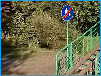 znak "koniec drogi dla pieszych" - oznacza koniec drogi przeznaczonej dla pieszych.