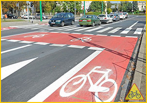 Znak jest malowany tam, gdzie wyznaczenie i wymalowanie pasa ruchu dla rowerów na stałe jest niemożliwe, bo nie ma miejsca dla niego, lub zmienia się sytuacja ruchu (zatoki postojowe, pasy postojowe, torowiska tramwajowe).