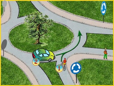 23) W tej sytuacji, rowerzysta pojedzie: